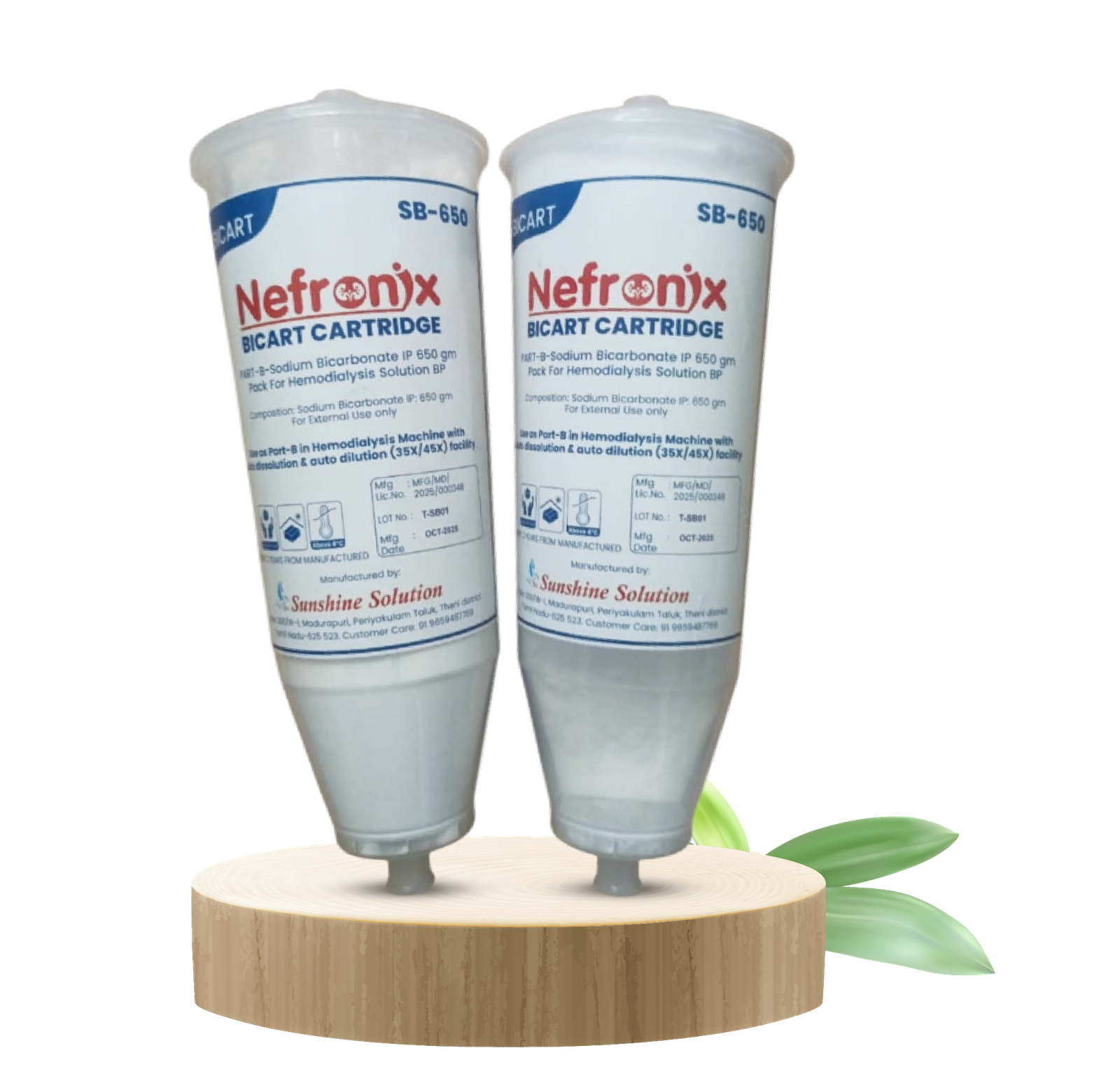 Haemodialysis Bicarbonate Cartridge (NEFRONIX-35X) is dry powder concentrate which is used for online preparation of sodium bicarbonate concentrate to prevent bacterial growth and system related inflammation.