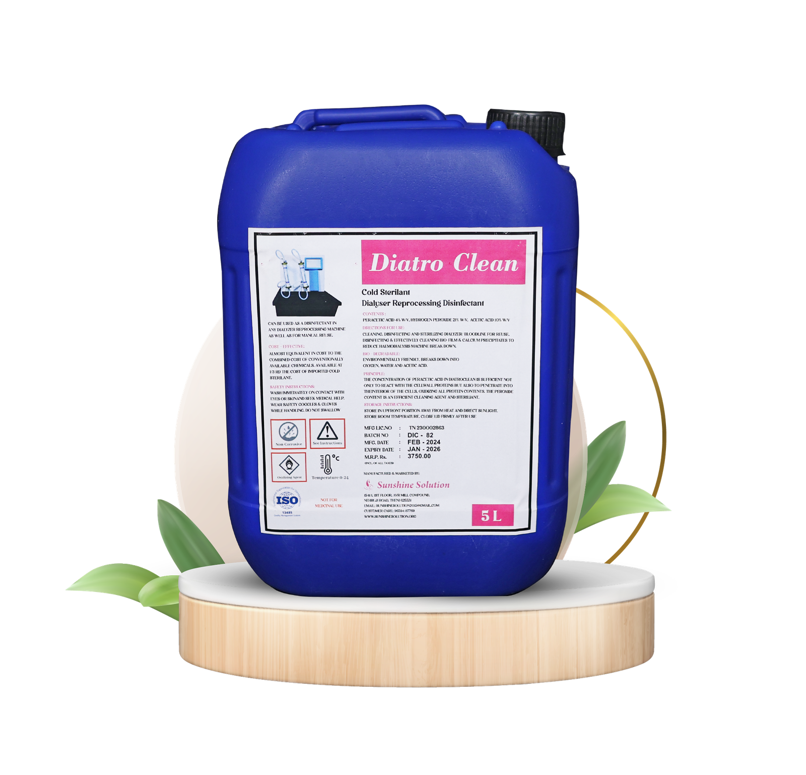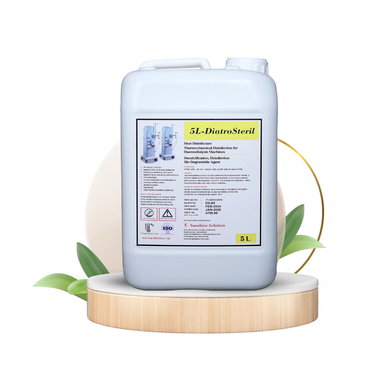 Sunshine Solution Diatro Clean Disinfectant is used for Chemo-thermal disinfection of Haemodialysis machines with recirculation and is bio-degradable. It can be used in any Dialysis machine. It is used for Thermal disinfection. Processed as per the market norms, offered disinfectant is broadly popular in the medical field owing to its quality. We are giving this disinfectant at nominal rates to our customers.